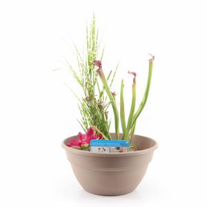 Mini vijver kunststof taupe Met zijn neutrale taupe kleur is deze mini vijver geschikt voor ieder terras! De teil wordt geleverd inclusief vijvermand met daarin 3 waterplanten die vooraf geselecteerd zijn door de leverancier. Na ontvangst giet u leid...