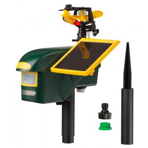 Het dieren afweermiddel van Nature werkt op zonne-energie en verjaagt reigers, andere vogels, honden, katten, konijnen en andere wilde dieren op zachte wijze van uw terrein of vijver. De bewegingssensor werkt ook in het donker, om nachtdieren weg te jagen! Het apparaat gaat automatisch aan en sproeit gedurende 3 tot 4 seconden een waterstraal van 10 meter wanneer het een dier detecteert. Het bereik van het water is instelbaar en afhankelijk van de waterdruk. De dieren zullen schrikken van het plotselinge water en het gebied verlaten. Let op, de vereiste oplaadbare batterijen (3 x 1,2 V niMH 800 mAh AA-batterijen) worden niet meegeleverd.