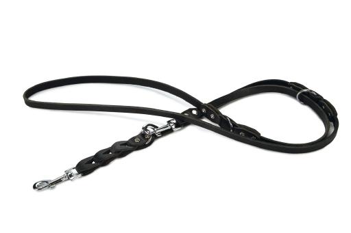 beeztees connex - hondenriem - leer - zwart - 200 cm x 12 mm